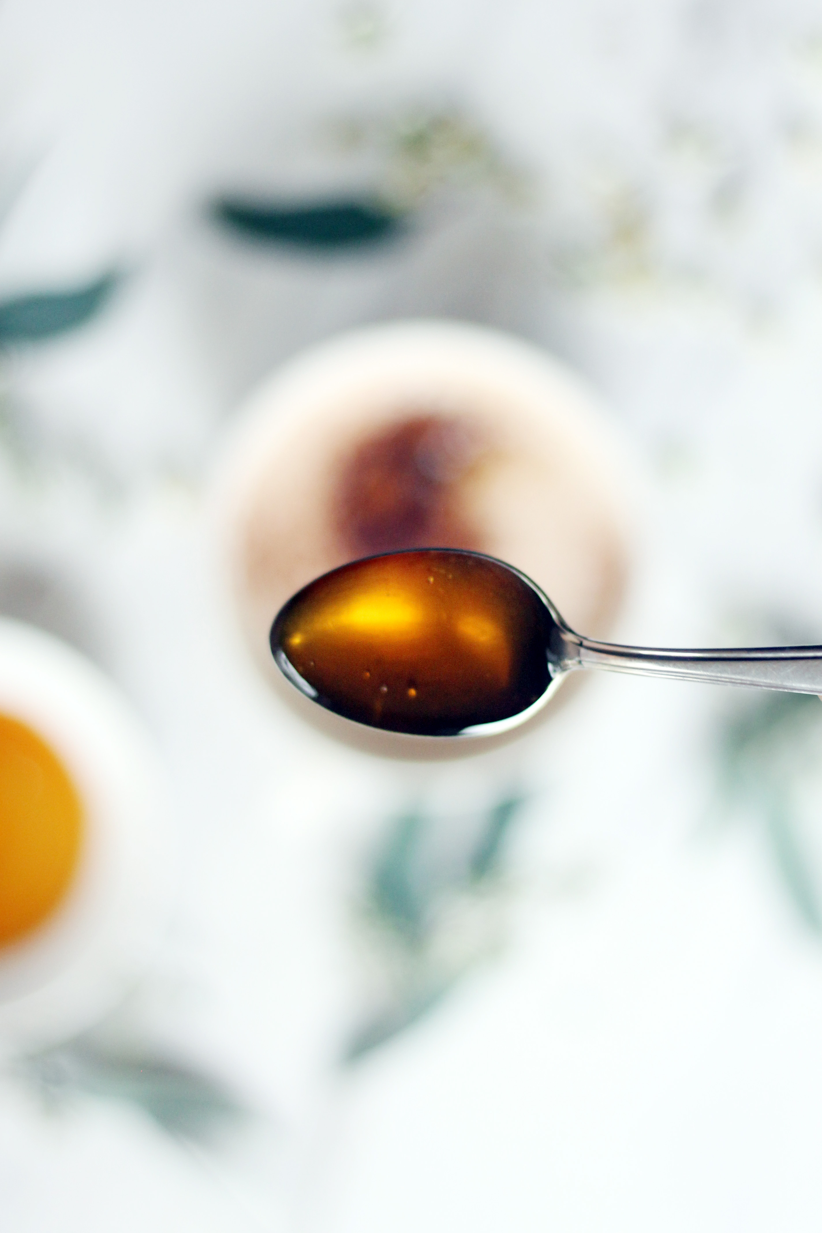 • Put oat milk, water, orange zest tea, cocoa, and raw honey into pot on stove. Bring to a boil.