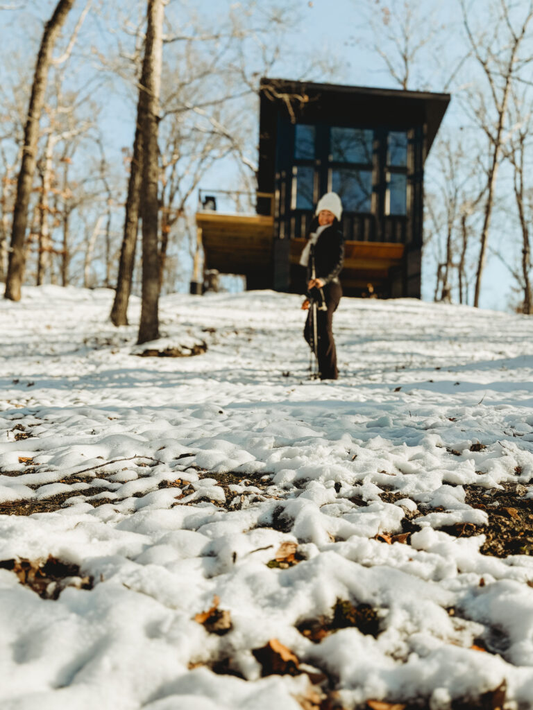 Just steps from the cabin, a secluded hiking trail winds straight to the shores of Lake of the Ozarks. Even in winter, the walk is serene and restorative—quiet except for the crunch of snow under your boots.