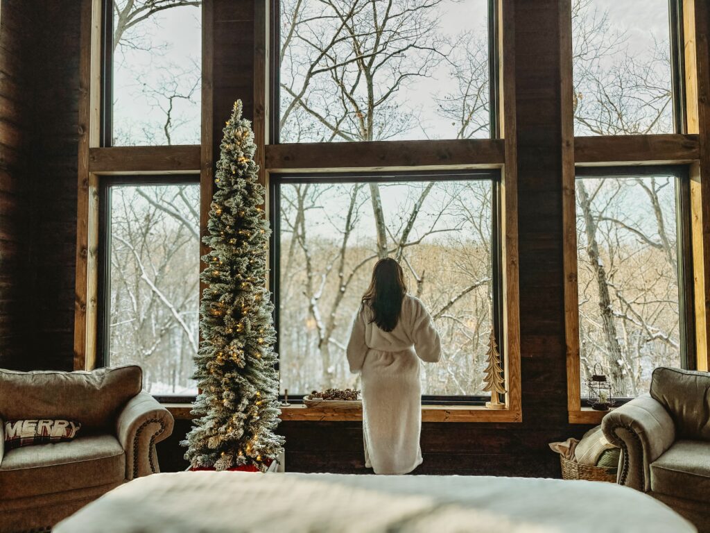 Bourbonhaus is filled with wide, floor-to-ceiling windows that invite slow mornings. Coffee tastes different when you’re wrapped in a blanket, watching the winter woods wake up at their own unhurried pace.